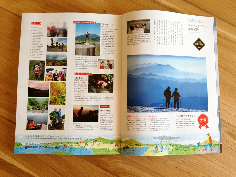 © 2012 teppei nakao. All rights reserved. ワンダーフォーゲル 2012年12月号 14 11月 ’12 久々のワンダーフォーゲル。ゴアテックスフォトコンテストページにてイラスト描いてます。下の帯部分です。 ワンダーフォーゲル 2012年12月号