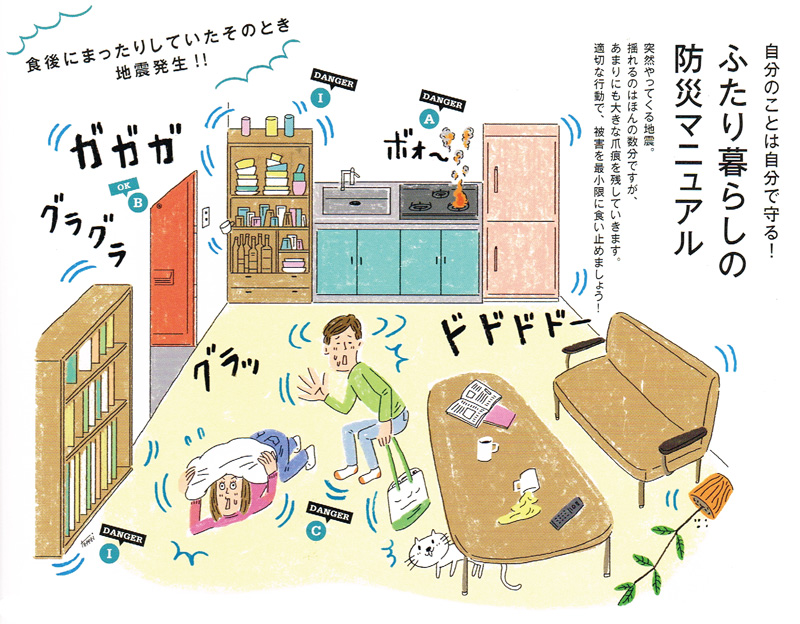 © 2013 teppei nakao. All rights reserved. ふたり暮らしSTYLE VOL.3 2013年2月号 4 1月 ’13 自分のことは自分で守る!ふたり暮らしの防災マニュアルってページで描いてます。 子供産まれてからペラペラページめくって眺めてて、いいなぁと思いました。(ふたりっきりとか自由度高い!) ふたり暮らしSTYLE VOL.3 2013年2月号