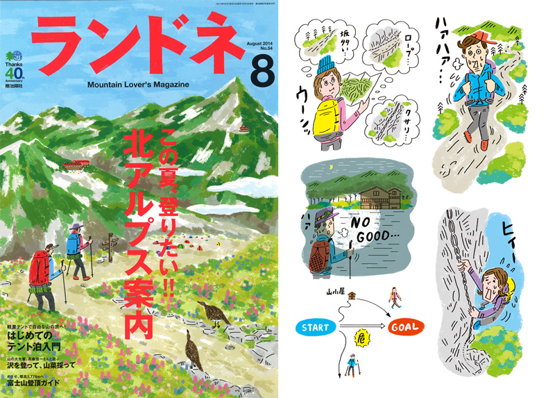 © 2014 teppei nakao. All rights reserved. ランドネ 2014年8月号 28 6月 ’14 カバー&カット描いてます。久々縦走行きたくなりました。この夏、登りたい!!北アルプス案内ですよ〜 ランドネ 2014年8月号