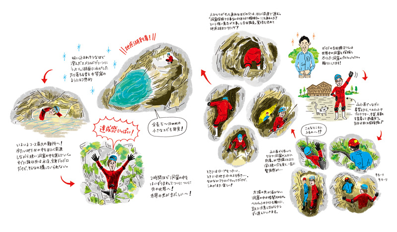 © 2014 teppei nakao. All rights reserved. OZ Trip 2014年7月号 28 6月 ’14 水と遊ぼう!トクベツな体験をしにってページで描いてます。しかもケイビング・・・昔モリカツさんに連れて行ってもらった事ふと思い出しました笑 (水曜スペシャルのつなぎ懐かしいw) OZ Trip 2014年7月号